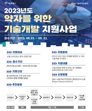 서울시가 디지털, 정보통신 등 발전된 기술을 활용해 약자가 일상생활에서 겪을 수 있는 불편과 어려움을 해결하기 위해 오는 22일부터 9월 22일까지 ‘2023년 약자를 위한 기술개발 지원 사업’을 공모한다.